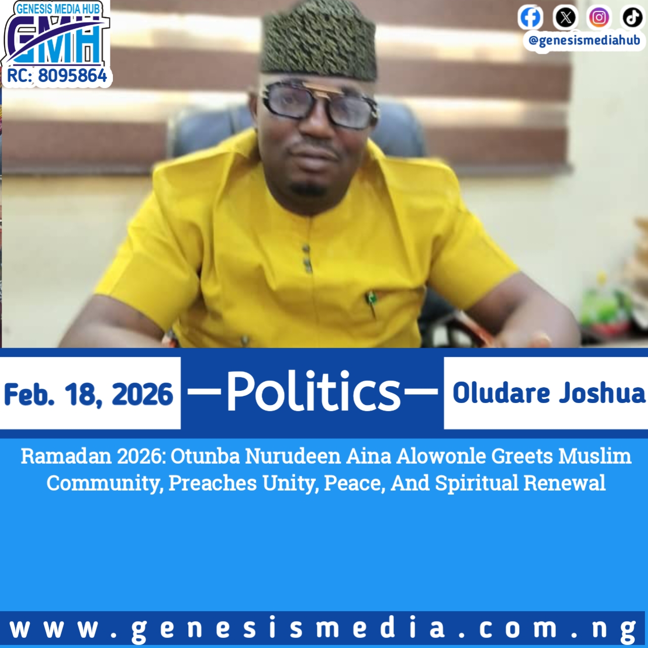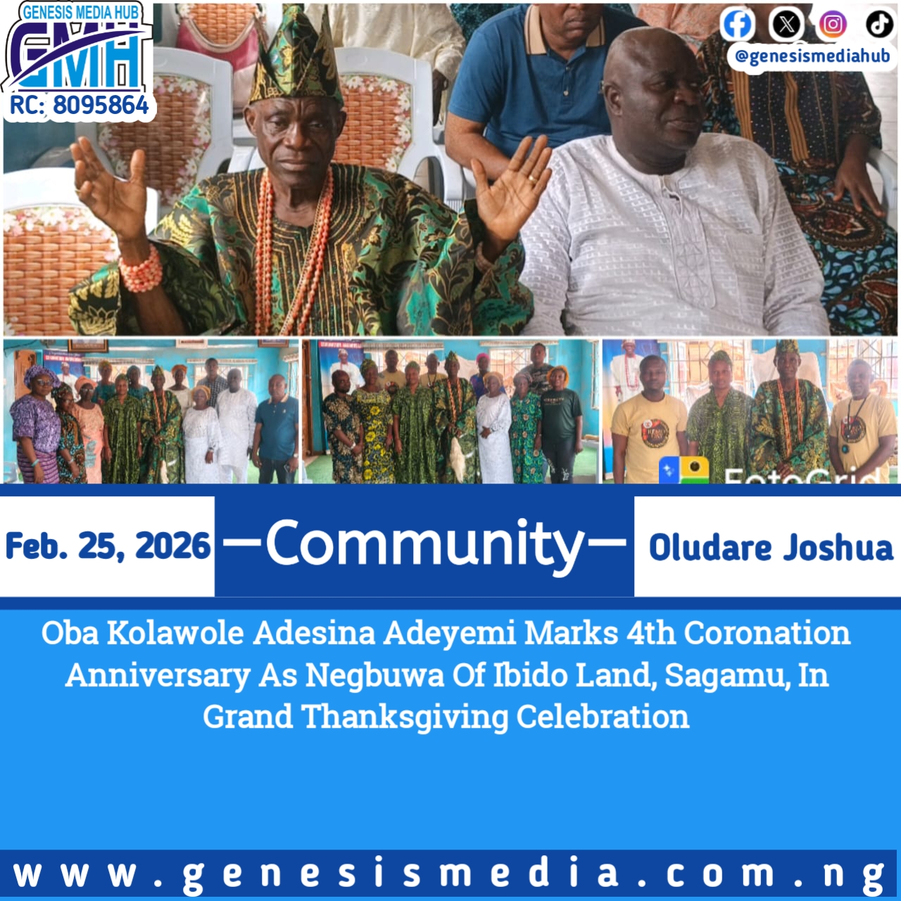 In a warm and celebratory message, Omooba Adeniyi Adesola Idowu congratulated Alhaji (Prince) Shamsudeen Adebayo Apelogun, affectionately known as All…