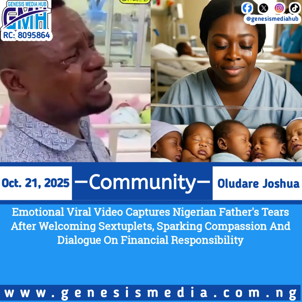 Emotional Viral Video Captures Nigerian Father’s Tears After Welcoming Sextuplets, Sparking Compassion And Dialogue On Financial Responsibility
