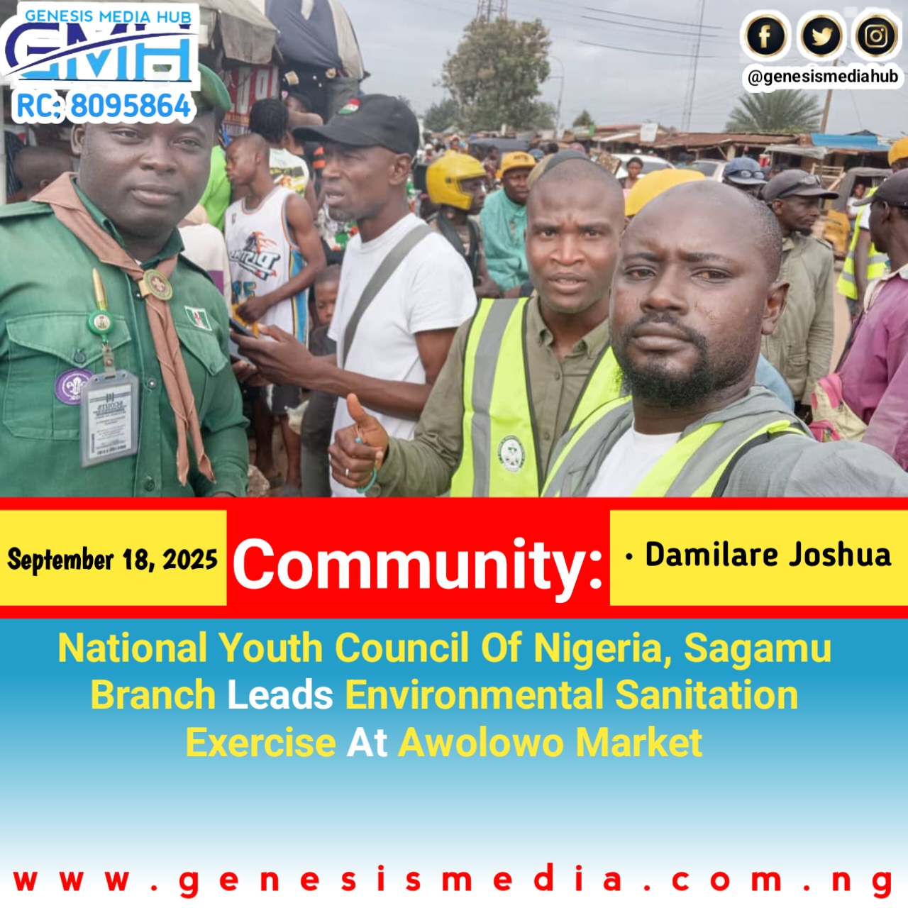 In a commendable display of civic responsibility, the National Youth Council of Nigeria (NYCN) Sagamu Branch, under the dynamic leadership of Comrade Yusuf Adebayo, organized an impactful environmental sanitation exercise today. The event took place today, September 18, 2025, at the bustling Awolowo Market, a vital hub of commerce in Sagamu, underscoring the council’s commitment to fostering a cleaner and healthier environment for all residents.