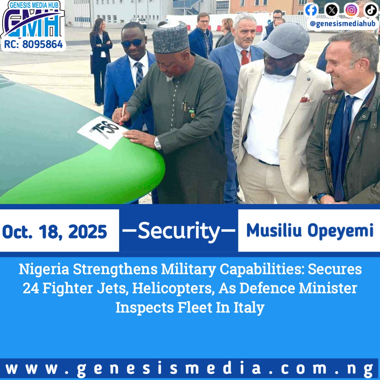 Nigeria Strengthens Military Capabilities: Secures 24 Fighter Jets, Helicopters, As Defence Minister Inspects Fleet In Italy
