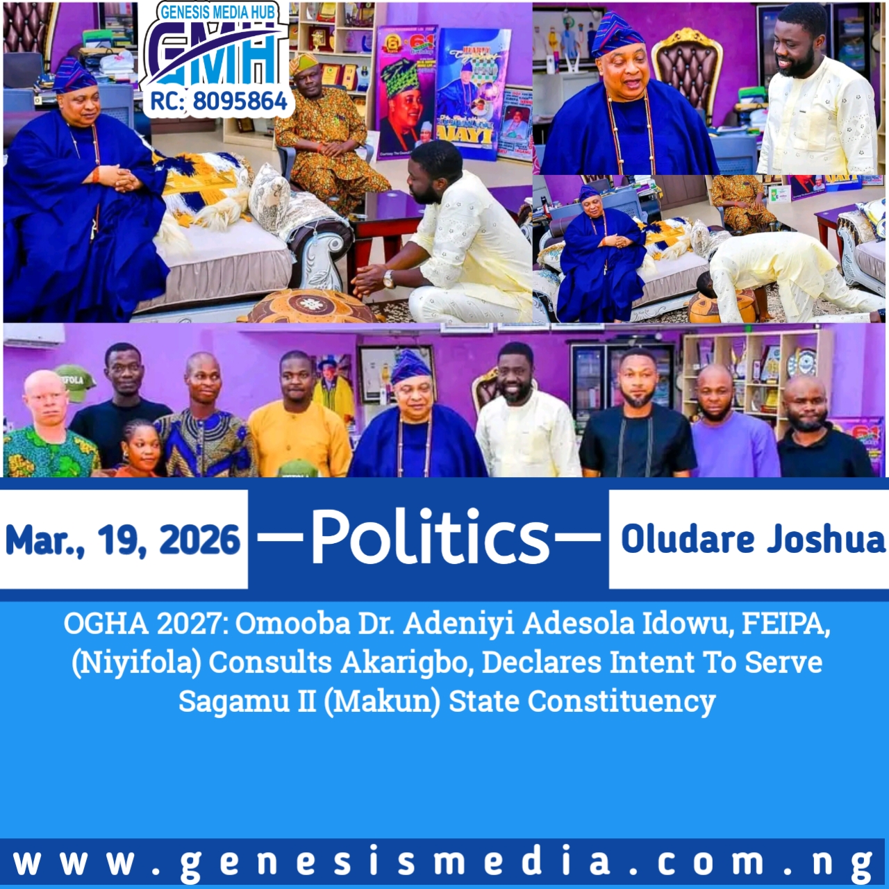 ‎OGHA 2027: Omooba Dr. Adeniyi Adesola Idowu, FEIPA, (Niyifola) Consults Akarigbo, Declares Intent To Serve Sagamu II (Makun) State Constituency