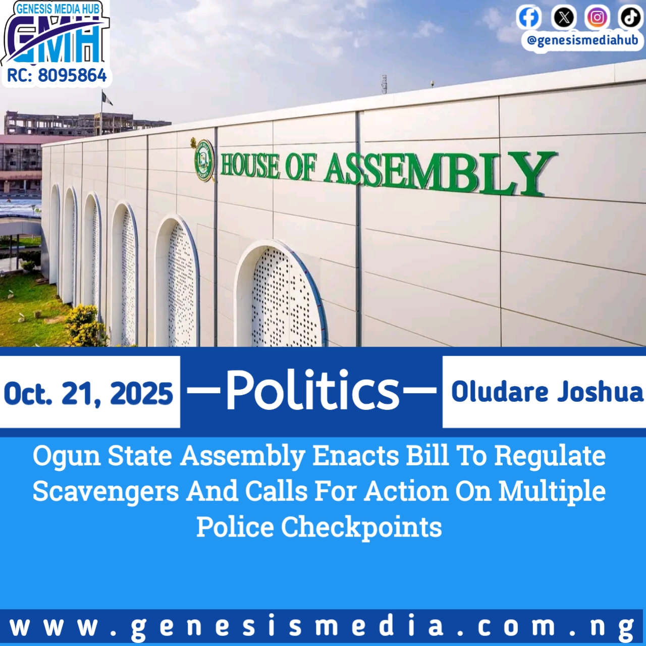 ‎Ogun State Assembly Enacts Bill To Regulate Scavengers And Calls For Action On Multiple Police Checkpoints
