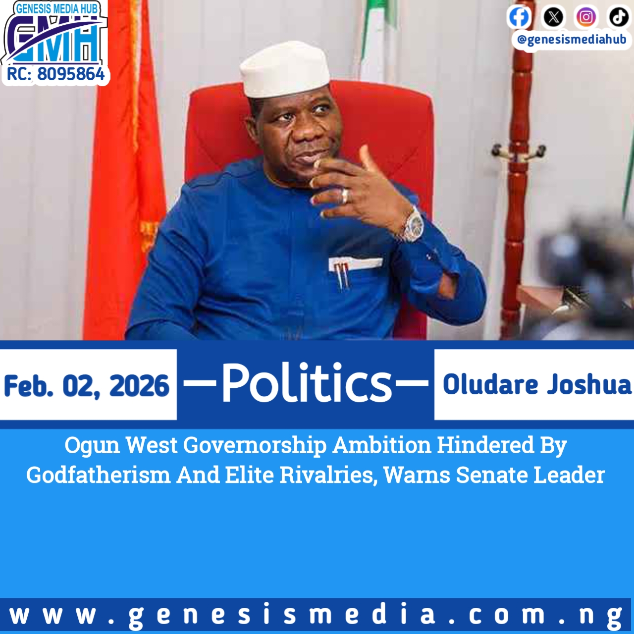 Ogun West Governorship Ambition Hindered By Godfatherism And Elite Rivalries, Warns Senate Leader