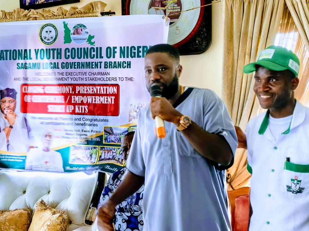 Omooba Idowu, a former Social Director of the Sagamu NYCN, attended the graduation ceremony of the program, which was held at the Ewusi Palace, Sagamu, Ogun State, on October 31st, 2025. In his address to the congregation, he commended the executive leadership of the Sagamu NYCN, led by Comrade Yusuf Adebayo, for their remarkable initiative and charged the beneficiaries to view the training as an opportunity to begin their own journey to stardom and self-independence.