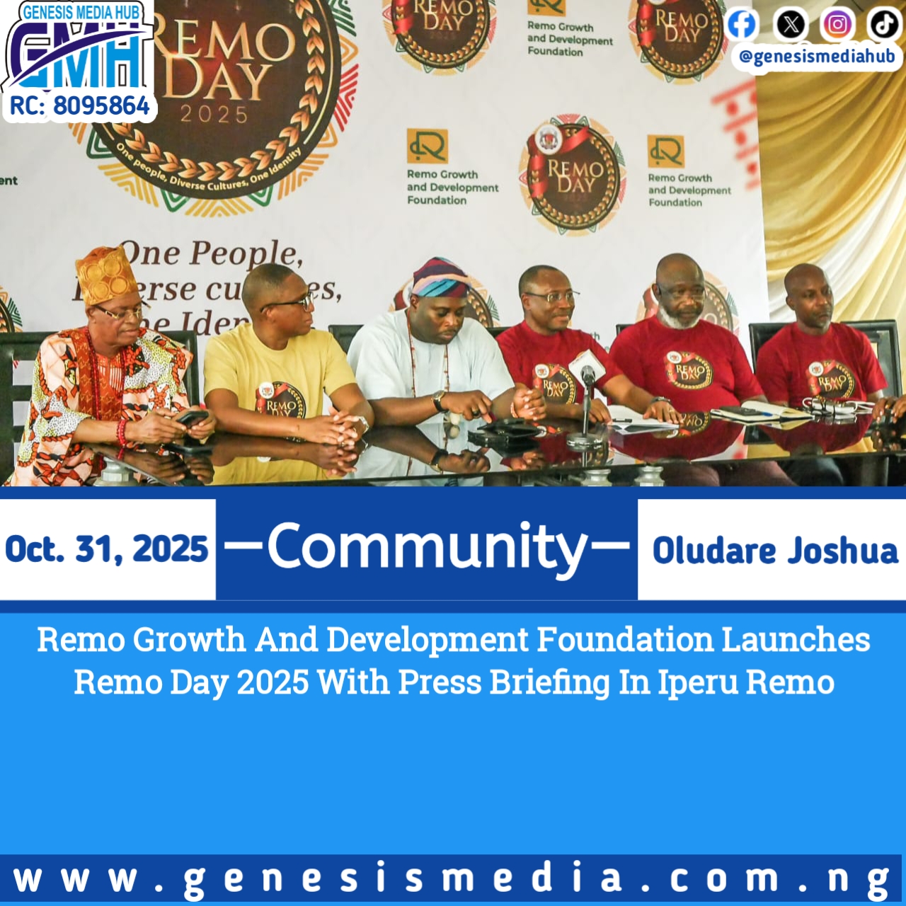 The countdown to the eagerly awaited Remo Day 2025 celebration officially commenced on Friday, October 31, 2025, with a press briefing and formal announcement hosted by the Remo Growth and Development Foundation (RemoGDF). The event took place at the Foundation’s Secretariat, located along the Iperu–Ilisan Road in Iperu Remo, Ogun State.