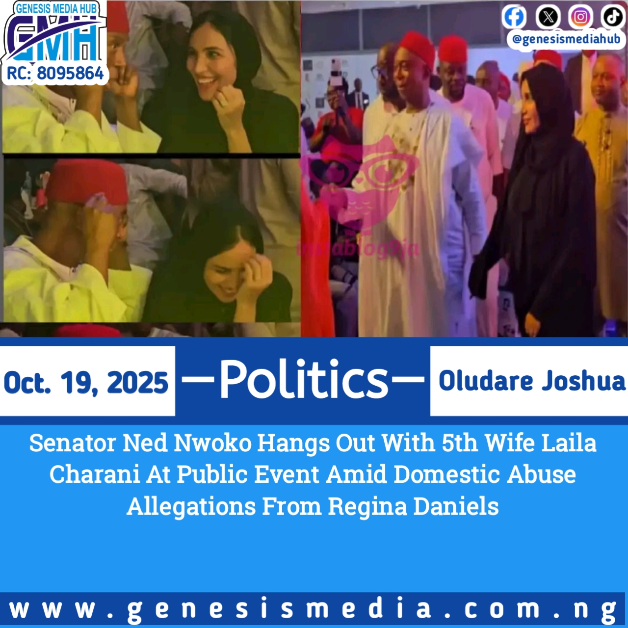 In a striking public appearance, Senator Ned Nwoko was seen attending an award ceremony with his fifth wife, Laila Charani, amid ongoing allegations of domestic violence involving his actress wife, Regina Daniels.