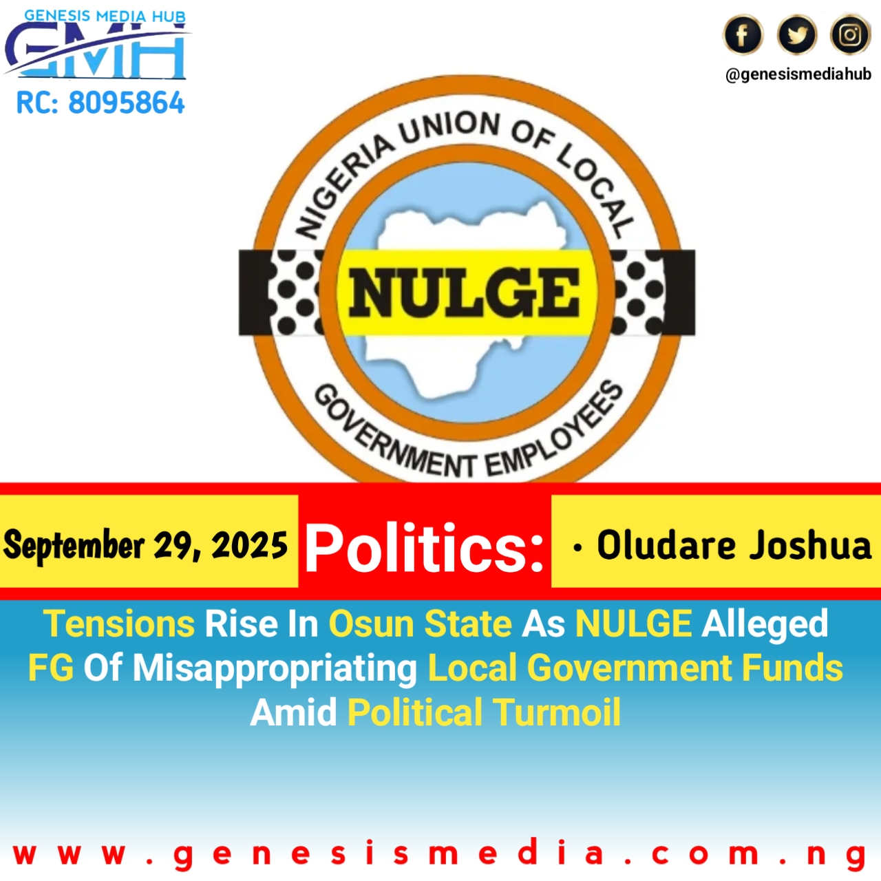 ‎The Nigeria Union of Local Government Employees (NULGE) in Osun State has expressed grave concerns over what it termed an “unprecedented abuse of power” by federal officials in the disbursement of local government allocations. During a press conference in Osogbo on Sunday, NULGE President Dr. Nathaniel Ogungbangbe alleged that the Minister of Finance, Accountant-General, and Attorney-General of the Federation unlawfully transferred local government allocations for March to September 2025 into accounts controlled by dismissed All Progressives Congress (APC) officials.